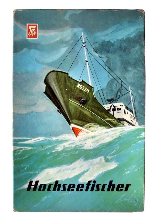 The Hochseefischer (Offshore fisherman) board displays North and Baltic Sea with several fishing grounds. Every player has a small plastic "trawler", which looks suspiciously like a ferry boat. The predetermined courses often divide and circle back - the player throws two dice and decides if uses both or only one of them to reach the richest fishing ground...