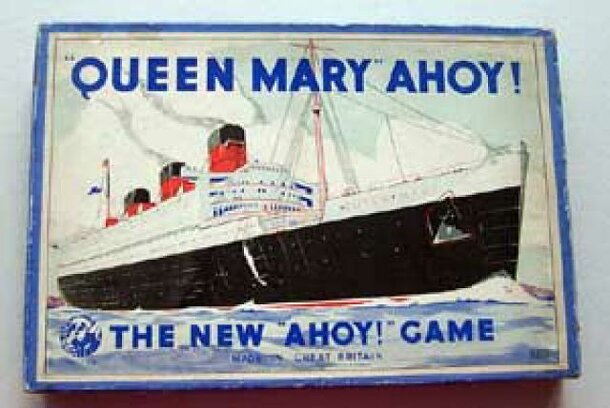 GAME information from www.nostalgiagames.net: The board of this game features circles and squares around a picture of the QUEEN MARY. Each square has a number of cards on them. These are the different cargoes that need to be on the ship before it departs, (oil, provisions, passengers, mail etc.) When you land on a square you take the top card from the deck...