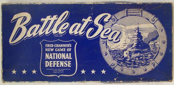 From the rules - Battle at Sea, the new game of National Defense, is played on a cloth surface which is marked with two sea lanes of 16 spaces each. Players assume control of a fleet and moves his fleet through his respective sea lane attempting to sink as many ships of the enemy fleet as possible. When one fleet has been moved completely through its sea...