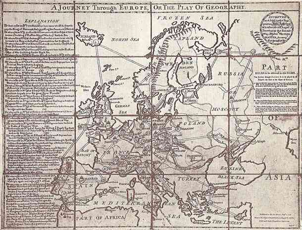 NOTE: This game page is only for the game from the 1700s, not for the similarly-titled but unrelated game Journey Through Europe (aka Explore Europe) published by Ravensburger et al in the 1950s through 1990s. This game is believed to be the first or one of the first known games in the English-speaking world to be attributed to an individual designer. It...