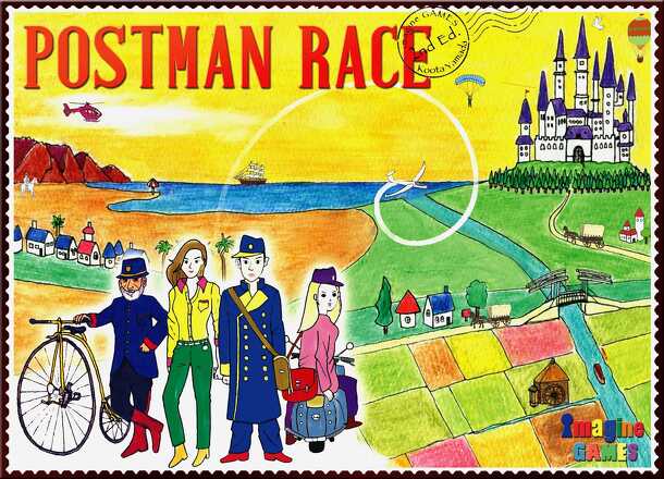 User summary: Postman Race is a race by postmen across the continent. By delivering letters before anyone else, you aim to become the world's best postman. Publisher summary: 大陸を横断する郵便配達員のレースです。誰よりも早く手紙を届けて、世界一のポストマンになることを目指します。 From the rule book (used with permission): Postman Race is a demanding and pop race between postmen to deliver a letter across...