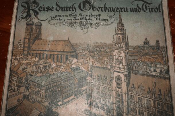 Objective: Be the first moving up to field 68 - moving by turns - throw the die and move according rolled number; ending on a any image follow instructions glued on cover inside. remarks: game belongs to the series: "Scholz' künstlerische Spiele" with very nice graphics/images; as usual - cute pewter figures seems to be the predecessor of Von München durch...