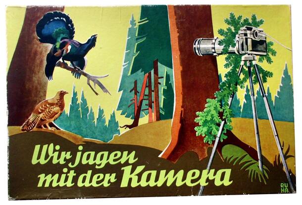 Objective: gain as many winning points as possible taking photographs from wild animals. - moving by turns - simple 'Roll & Move' game; ending on a 'pictured' space you may collect appropiate card be the first one, otherwise collect winning points only. Some spaces send you back or forwards... remarks: game - as usual for GDR products - praises socialist...