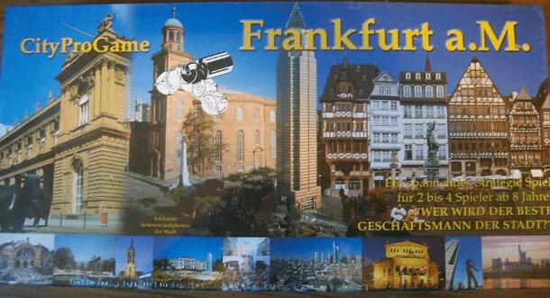 Objective: Using the detailed street map of Frankfurt each player is given five companies to be established in the city as close to the centre as possible. With the help of dice and counters, each players chooses where to place, turn or remove company tiles. Once a company is established on the map, the corresponding four 'places worth seeing' are...