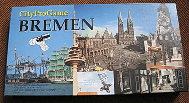Objective: Using the detailed street map of Bremen each player is given five companies to be established in the city as close to the centre as possible. With the help of dice and counters, each players chooses where to place, turn or remove company tiles. Once a company is established on the map, the corresponding four 'places worth seeing' are revealed...