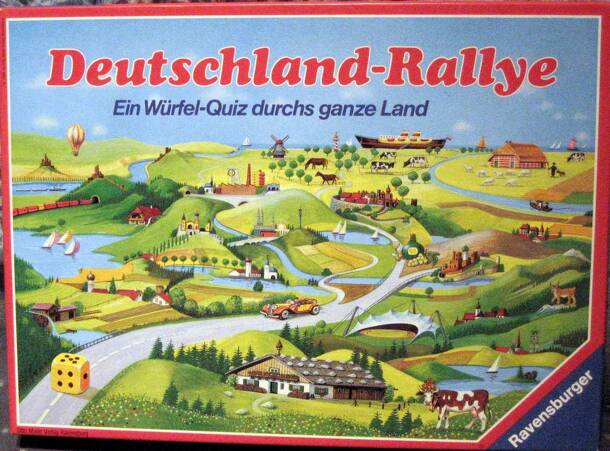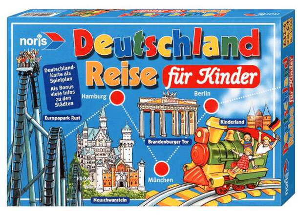 On a round trip through Germany, the players start with their game piece in Berlin. The player whose turn it is rolls the dice and receives a question from the question booklet, depending on where he is. If the player gives the correct answer, he may advance the number of dice rolled, otherwise he must stop. The player who reaches Berlin first wins the...