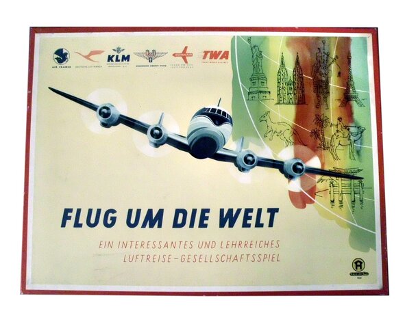 This is a game about around-the-world flight using a map showing the North Pole in the middle. Nominally there's an actual race, although this isn't really consistent with the leisurely sightseeing described in many events and use of contemporary passenger airliners. With its flavour texts and other enclosed information, the game is clearly meant to...