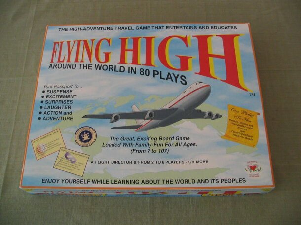The game bills itself as the "high-adventure travel game that entertains and educates." One person acts as "Flight Director" and from two to six players have fun while learning about the world and its peoples, by answering geography and general knowledge questions. Contents: -One game board -$60,000 travel dollars (in denominations of $100, $500 and $1000)...