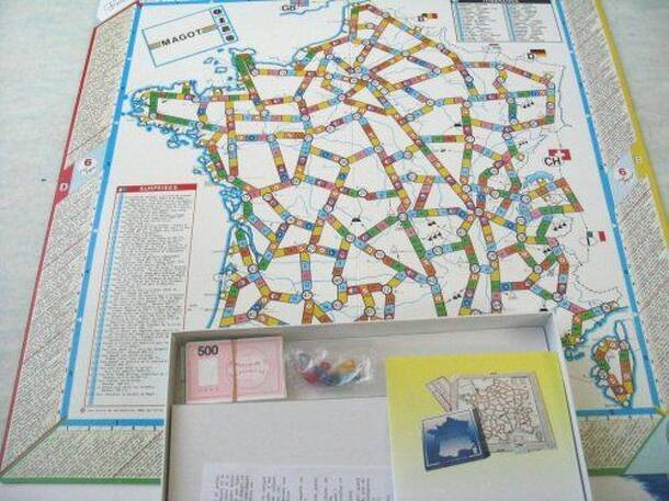Players choose city of departure and city of arrival and start traveling. The goal is to collect maximum points by answering questions correctly. They roll the dice and move on the France. Depending on destination square, player must give the names of some sites (rivers, mountains, province, region, ...) to earn 50 points. If player stops on a yellow box...