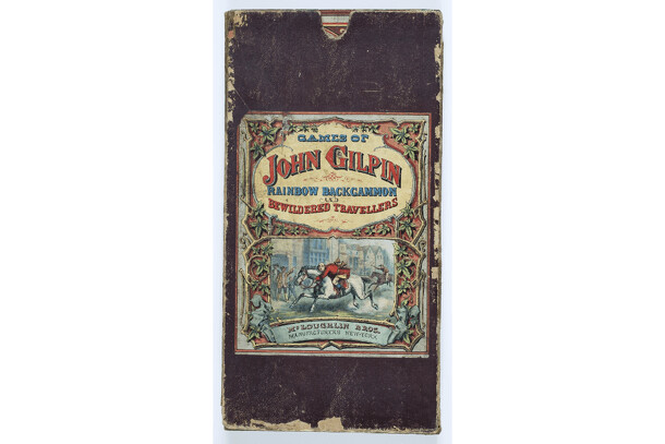 Three games within a wooden folding game box, all using a spinner rather than a die. John Gilpin is based on English poet William Cowper's 1782 comic ballad "The Diverting History of John Gilpin". The poem tells how Gilpin and his wife and children became separated during a journey to the Bell Inn, Edmonton, after Gilpin loses control of his horse which...