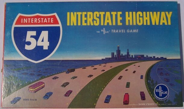 Object of the game is to travel the newly implemented Interstate Highway system based on a randomly drawn Trip Card (ex. Seattle to Miami) and be the player with the most money at the conclusion of the game. Along the way, players can be forced to pay fees to other players by stopping at the Motels, Filling Stations, Restaurants and Repair Shops. They can...