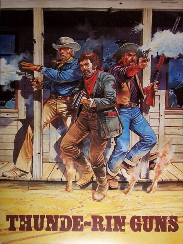 The board shows a typical stretch of Hollywood West: there's a town at the center with a rail line and a stage line running through it, a badlands in one corner where the outlaws hide out, and an Indian village in another corner. Players take the roles of outlaws, sheriffs, marshals, or gunfighters; round up gangs or posses and then either rob the...