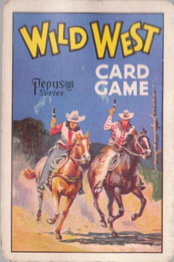 Game set in the American Wild West. Object of the game is to win cards having green numbers on them, namely the outlaw or holdup cards. Game consists of 15 cowboy cards, numbered 1-15, 15 outlaw cards with red numbers 1-15 and green 1-5, 11 holdup cards with green numbers 1-5 and 3 sheriff cards. The holdup cards form a different stack, top card exposed....