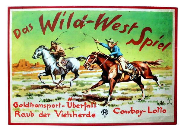 Go west! Every player starts with his horse in St. Louis and has to pass "dark and bloody grounds" until he reaches Winnetou's pueblo. Lots of adventures are to be faced on the way. By drawing action cards you encounter famous Cowboys and Indians. You can be captured and freed. You can meet bandits and kill grizzly bears. For all those adventures you get...