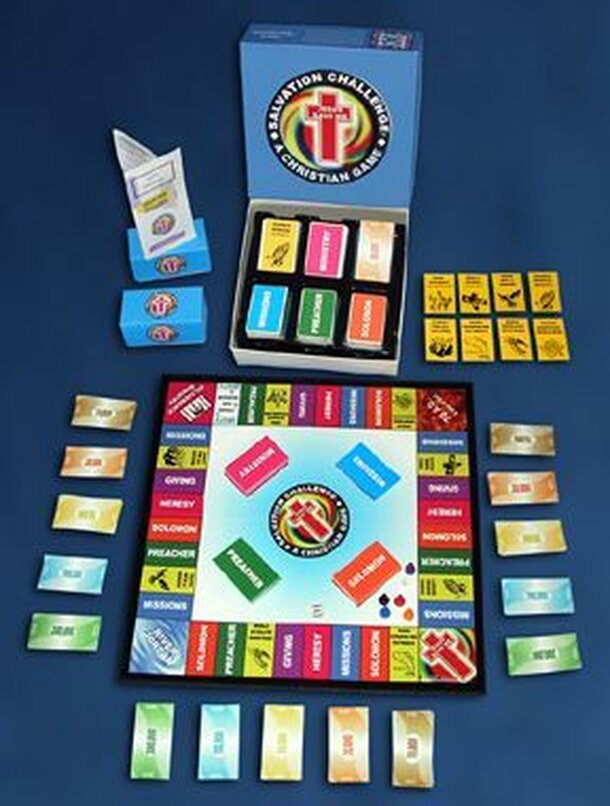 Salvation Challenge is a great new family game. Each player starts out with one million in kingdom cash. Players get saved by landing on Calvary and making the salvation call, “Jesus Save Me”. Players then enter a race to be first to give all of the kingdom cash to missionaries to further God’s Kingdom. The first player to get saved and give all their...