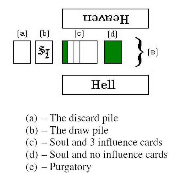From the publisher's website: "Take on the role of a recruiter for Heaven or Hell in this card game of soul acquisition! Souls come under your influence during the last four acts of their lives. If you can influence them to take Good or Evil actions, you nudge them closer to joining your employer in Heaven or Hell. Most souls come to you with one foot in...