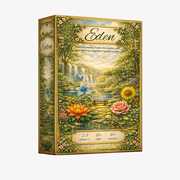 In Eden, players become gardeners competing to cultivate the most flourishing garden. By rolling dice and strategically placing floral tiles, you will grow vibrant arrangements of Seeds, Leaves, Vines, and Flowers to score points and create beautiful combinations. But nature is never predictable. As the garden moves through Spring, Summer, Autumn, and...