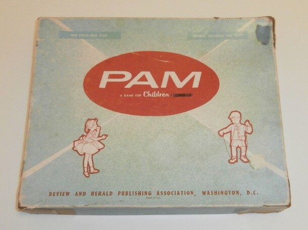 PAM is an educational game for younger children. A set of 12 unique illustrated 3x3 grids features images of things that are Plants (P) or Animals (A) or Minerals (M) and the players must match the images on the grid with a similar image on a randomly drawn card. The first child to match three images in a row on his or her 3x3 grid is declared the winner....