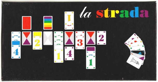 The Street has players laying cards in a row (the street) and then columns to construct Buildings that are scored. The cards are numbered (ruins), or are houses, towers, tornadoes, coloured jokers, and multi-coloured intersection cards. All cards have rainbow backs. Laying a numbered card on the Street starts a building, which extends down a column in...