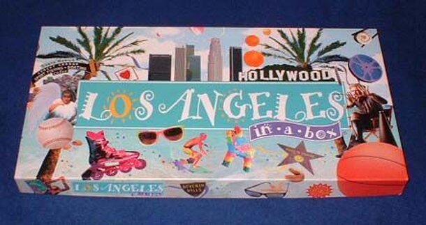 A Monopoly clone from Late For The Sky; this version is based in Los Angeles, California. It has spaces such as Watts Tower, Venice Beach, Farmer's Market, Hollywood, Dodger Stadium, Malibu, and the Walk of Fame. The tokens include a movie reel, cookie, surfboard, roller blade, sunglasses, and a sailboat. Cards include local events and staples of life in...