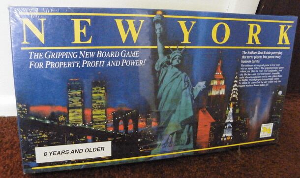 Objective: Using the detailed street map of New York each player is given five companies to be established in the city as close to the centre as possible. With the help of dice and counters, each players chooses where to place, turn or remove company tiles. Once a company is established on the map, the corresponding four 'places worth seeing' are revealed...