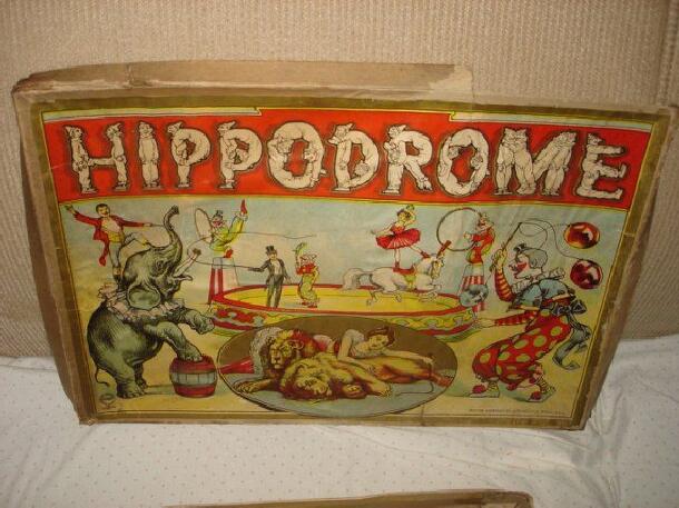 This game from from Milton Bradley dates back to 1890 and features a lithograph map of an around the world race for two players. Each player in turn spins the spinner and moves the indicated number of spaces paying penalties for landing on an opponents playing piece. First player to circumnavigate the globe wins the game. There are safe areas where no...