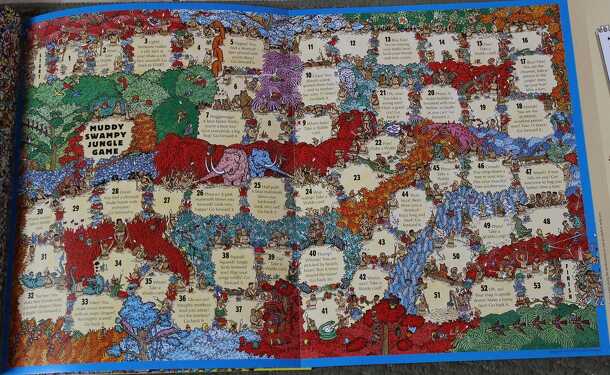 A roll-and-move game included as a fold-out in the book "Where's Waldo: The Incredible Paper Search", using punch-out components also in-lined in the book. Along with standard roll-and-move rules, some spaces require you to draw a card from a special deck that gives you a tongue twister to read aloud. Book published as "Where's Wally? The Incredible Paper...