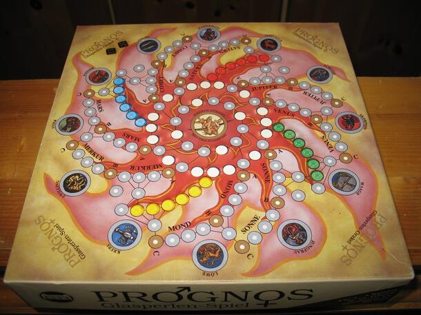 This is a very simple game. The game board depicts a mountain, which the players have to climb. Each turn you draw a card and play a card (you don't have ANY hand cards). You move your pawn according to the card drawn. There are green cards which allow you to climb up the mountain, red cards which make you fall down and blue cards (which depict mountain...