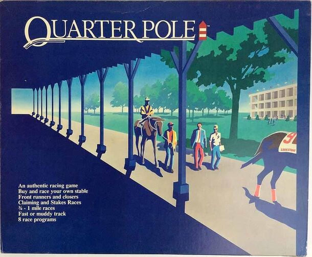 Unique horse racing game where each player guides a stable of horses through a program of eight races, where purse money is won and where the majority of races are "claiming" races where the players can acquire other players' horses. Each horse is assigned a value, so stable owners must be careful not to drop a horse in class so much that the horse is...