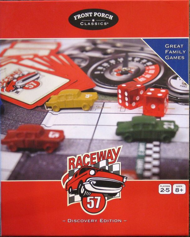 "RACECRAZE: A Strategic, Fun-Filled Racing Game!" A Nascar-like themed racing game from a small publisher. The mechanics of this game are simple: "Qualifying" position is based on random card draw. Each turn, roll three (standard) dice, and optionally roll two more "special dice" (33% +3, 33% -3, 33% take a card). Move your car on the track (16 spaces to...
