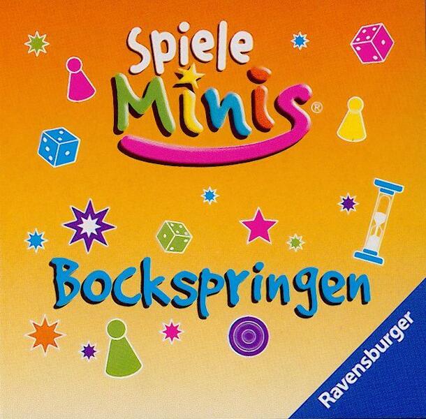 "Spiele Minis" is a series of small surprise boxes (i.e., you don't know what you get) from Ravensburger. They are meant to be carry-on or gifts, suitable for children ("Mitbringspiel"). Some of the cubes contain actual games, others contain magic tricks, puzzles etc. "Bockspringen" ("Leapfrog") is a simple dice-rolling racing game for 2 players. Each...