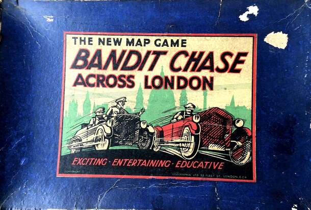 Bandit Chasse Across London is a car chase across London where a player becomes a bandit that is pursued by Police cars. The Bandit car starts at a designated starting point determined by the dice and his objective is to reach home to win by the throw and move of a dice. All other players are Police cars trying to catch or overtake the Bandit car before it...