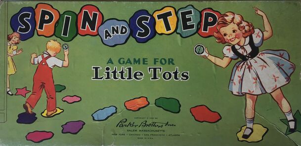 This is an unusual spin-and-move game aimed at children between 5 and 9, and suggested for parties. It includes a spinner for each of four players and a set of 30 irregular cardboard shapes (five each of six colors). Instead of a board, players lay out their track ahead of time by placing the shapes like stepping stones across floors or lawns. Players then...
