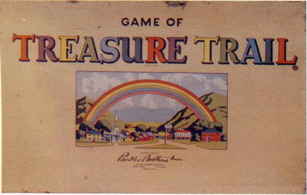 In Treasure Trail, each player takes the part of a traveler attempting to be the first to reach the pot of gold at the end of the trail. The "trail" is a continuous track of colored spaces beginning at the left and ending near the right side of the game field. A spinner is used to mark the players’ progress; each player moves a number of spaces forward in...