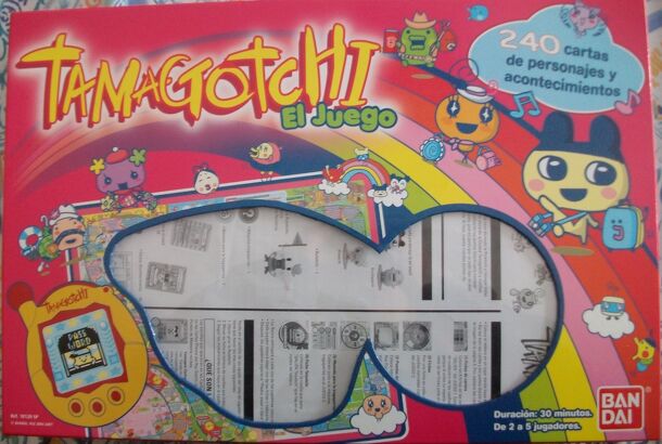 From the back of the box: Everybody wants a TAMAGOTCHI toy, but not everyone has the devotion to raise one properly. Here's a perfect solution: The TAMAGOTCHI Game. Play this game with your friends, (with or without the TAMAGOTCHI toy.) Just keep your pet well-fed, happy, healthy, clean, well-trained and amused...before you know it you'll have a...