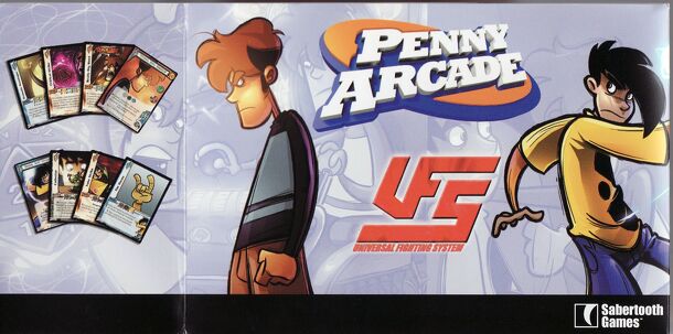 The Penny Arcade cards for the Universal Fighting System. From the website: "Choose your fighter from the mega-hit webcomic Penny Arcade: the capricious prankster, Gabe, or the malevolent genius, Tycho. This February grab the Penny Arcade Card Game from Sabertooth Games and re-enact their ferocious - and comic - battle for the watch. Sit down with a...