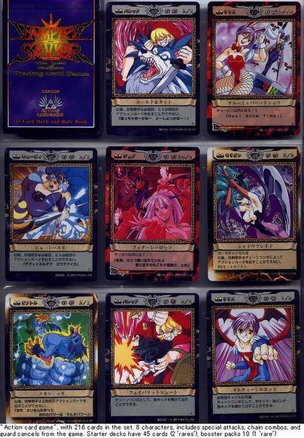 VERSUS TCG is based on the SNK vs Capcom - Card Fighters' Clash video game (for Neo Geo Pocket Color). A two player fighting game with 50 card decks and 5 card hand size. Each player gets 3000 HP, and you lose if you have 0 life. The full release version uses the same artwork from the video game for most of its cards. This consists of SNK and Capcom...