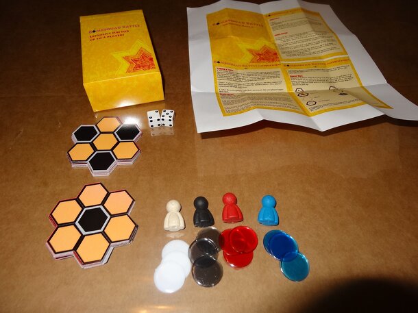 It's an "every man for himself" bombfest on a battlefield of hexagon spaces. Have a blast running around the battlefield, collecting power-ups, and trying to trap your buddies with explosives before they can do the same to you! Notes and features* 2 sided, interchangeable floor map pieces for a different battlefield each game. Up to 4 players compete on...