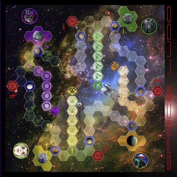 From the Publisher's website: Space Ludo is a space sci fi themed version of Ludo, a traditional race and capture game enjoyed around the world. Ludo is related to Pachisi, Trouble, Sorry! and others. All of them are simplified descendants of the ancient Indian cross and circle game, Pachisi. Space Ludo offers an addicting blend of luck and strategy. Dice...