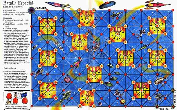 A race game played on a rectangular board with Alquerque-style board topology (alternate spaces have 8 and 4 neighbors). The board represents space, and twelve regions of five spaces each are marked as "galaxies" numbered 1 through 12. Each player has three spaceships, and the object of the game is to visit each galaxy with at least one ship, in numerical...