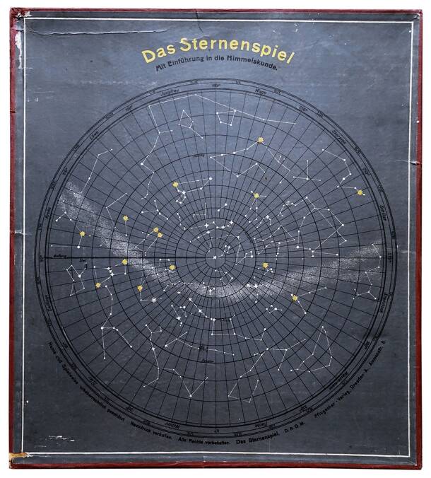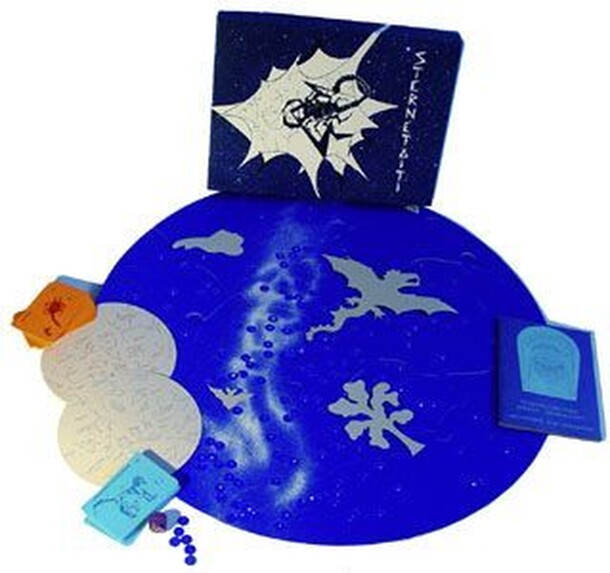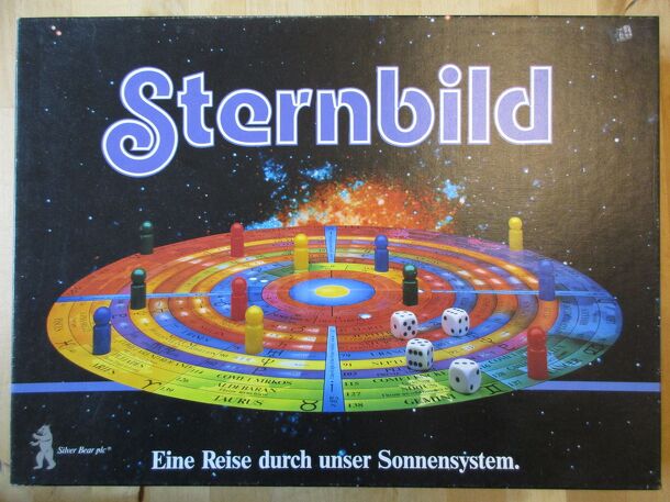 Sternbild is a roll and move game on a board depicting our solar system and a little bit of what's beyond. Players roll four dice to move to the outer edges and eventually to the center of the galaxy. Certain fields have certain effects, and players can strike each other and send each other back to the center, although pawns which went through that get a...