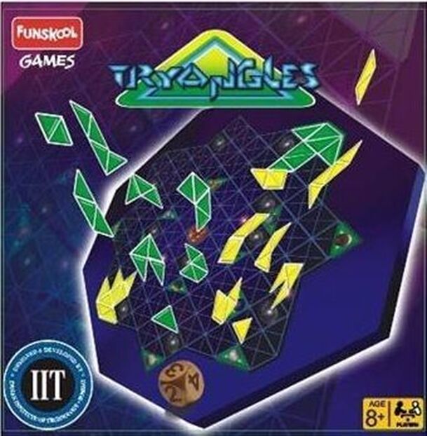 Tryangles is a space-themed game having a board with a triangular grid containing a few black holes, planets, stars etc, with a Base area for each player. Each player has a set of triangle-based polyominoes containing 2, 3 or 4 spaces. A die is thrown to indicate whether a player may place a piece with 2, 3 or 4 spaces. Players place pieces over the...