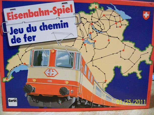 Each player attempts to connect two railway terminals with his pieces. The player who is first to complete a continuous connection is the winner. The railway stations possible during each game are determined by throwing letter dice. If, for example, "F" is thrown, the piece belonging to that player can be placed on Faido, Filsur, Fiesch, Flamatt, Frutigen...