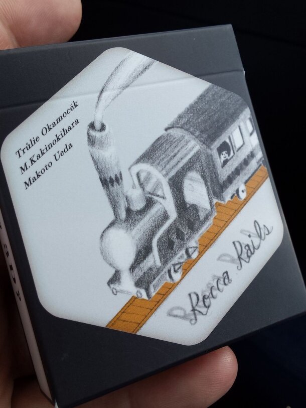 Rocca Rails(ロッカ・レイル)は六角形のカードゲーム。同じ色の線路をつなげていきます。列車を出したら、もう一回プレイ。トンネルと嵐はいつでも出せます。嵐で何が起きるかは、サイコロをふって決まります。 イラストは植田真さん。 札幌MY RAIL PROJECTとコラボレーションしたゲームです。 Rocca Rails is a hexagon-shaped card game designed to look like a cube. Connect same colored railways. If you draw a train card, you can play one more time. Tunnel cards and storm cards can be drawn...