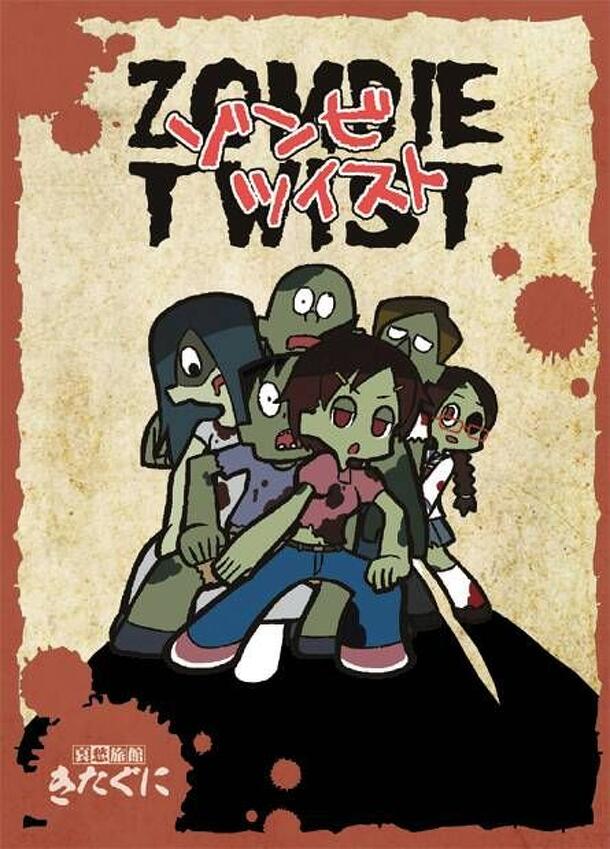 User summary: ゾンビツイスト (Zombie Twist) is a quick card game from the Japanese dojin circle 哀愁旅館きたぐに (Aisyu Ryokan Kitaguni). The game is published in an English / Japanese edition. The players take turns to play cards from their hands to a central discard pile (as in the game UNO). The cards have instructions, such as "Make circular motions with your arms"...