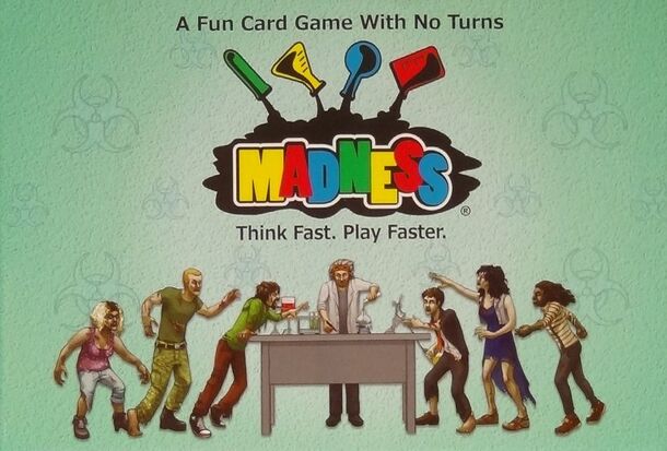 The world has been infected with the Madness Virus which has begun turning the population into blood-thirsty zombies. Help find the antidote formula and save the world before it's too late! Madness is a fast-paced card game for 2 or 4 players ages 9 and up. There are no turns in the game and so players must think and play quickly in order to win. Match...