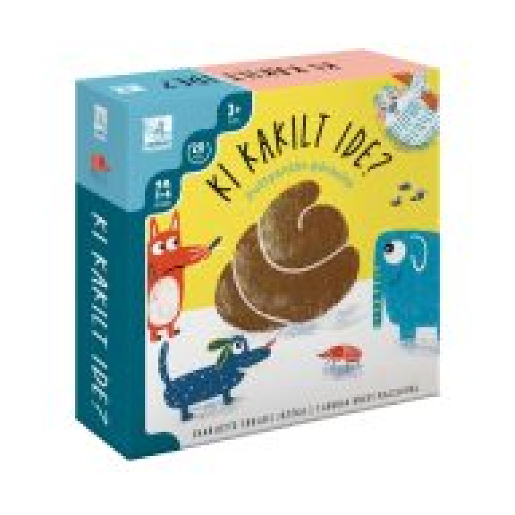 Ki kakilt ide? ("Who Pooped Here?") is a children’s memory and matching game in which players pair animals with their droppings. Each tile features either an animal or a distinctive type of animal poop, and players must find the correct pairs by turning over tiles and remembering their positions.
