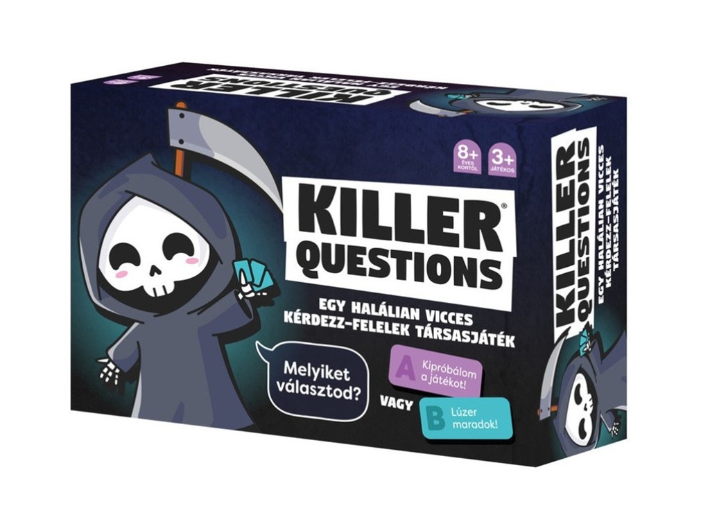 A Killer Questions - Halálian vicces kérdezz-felelek egy kiváló társasjáték, 3 - 10 játékos részére, az átlagos játékidő rövid, csak 15 - 30 perc. A társast, 8 éves kortól ajánljuk kipróbálni. A játékmenet erősen épít a questions and answers mechanizmusra.