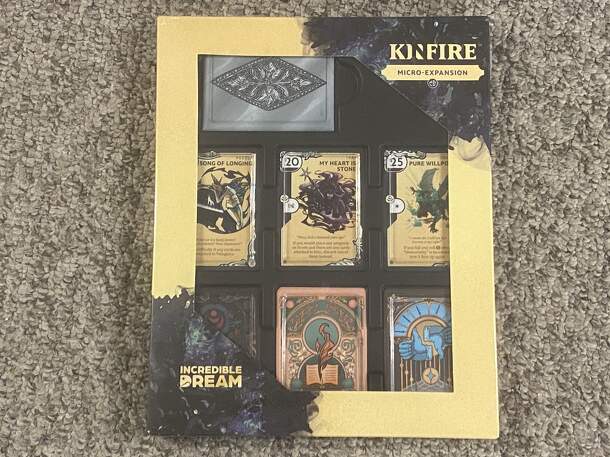 A box consisting of micro expansions/promo cards for 5 games set in the Kinfire Universe: