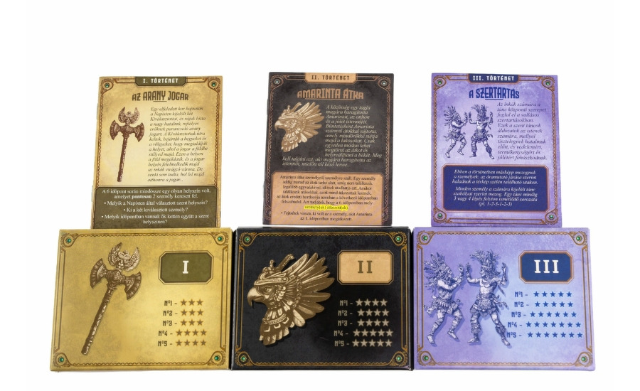 Az Amarinta átka, Az arany jogar vagy A szertartás című történetek mind más-más rejtvényt kínálnak, többféle nehézségi szinten. Egyes történetek új szabályokat vezetnek be, vagy extra csavarokat adnak a játékhoz – például egy átkot, amely egyik szereplőről a másikra száll, vagy utakat, amelyeken csak egy irányban lehet haladni.